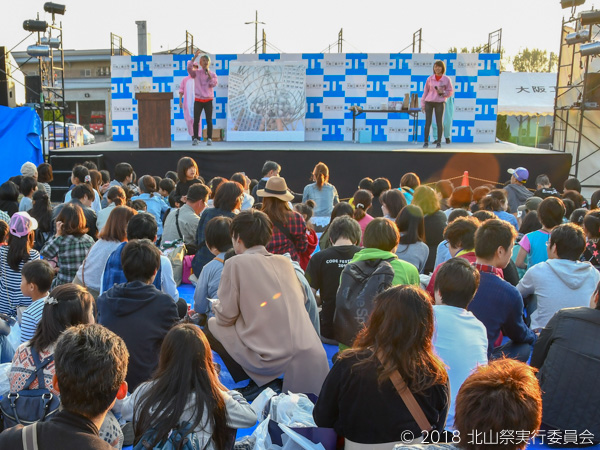 北山祭でのステージイベントの運営・司会・進行を行います。北山祭のステージイベントには毎年大勢のお客様にお越しいただいています。ステージイベントへの出演依頼、イベント内容の提案や企画等を行います。北山祭以外のイベントの司会も担当します。